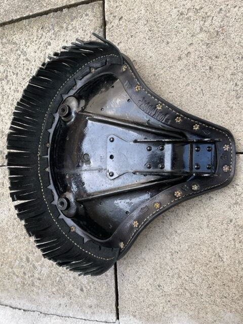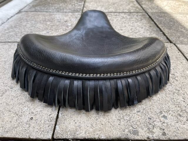 ハーレーダビットソン、ハマー純正シートをヘビーデューティー14ozレザーで張り替えました。 ポリスサドルシートより一回り小さいシートパンでボバーやチョッパーに最適です。 こちらも一点物です、お見逃しなく。