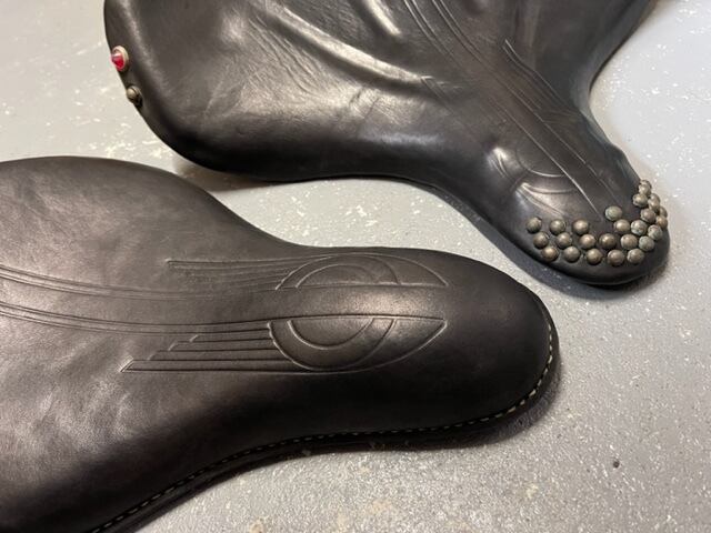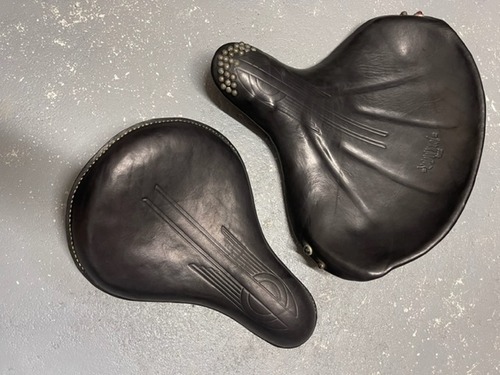 JUNK-MOTORオリジナル、アルミサンドキャストシートに分厚い14ozレザーを手縫いで仕上げました、ノーズにスピードボールをあしらった一点物です。